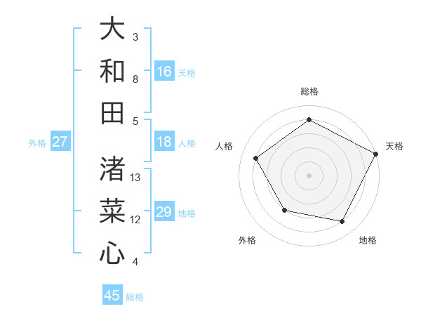 大和田 渚菜心さんを姓名の画数から五運を鑑定