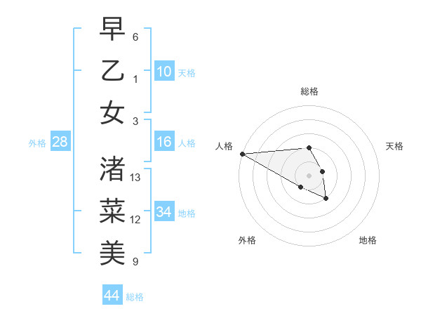 早乙女 渚菜美さんを姓名の画数から五運を鑑定