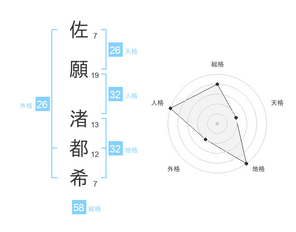 佐願 渚都希さんを姓名の画数から五運を鑑定