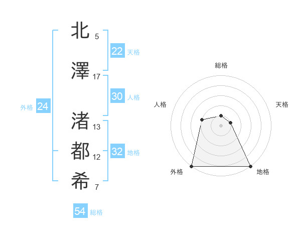 北澤 渚都希さんを姓名の画数から五運を鑑定