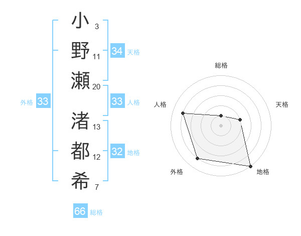 小野瀬 渚都希さんを姓名の画数から五運を鑑定