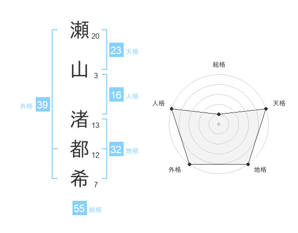 瀬山 渚都希さんの外格は39画の5点!