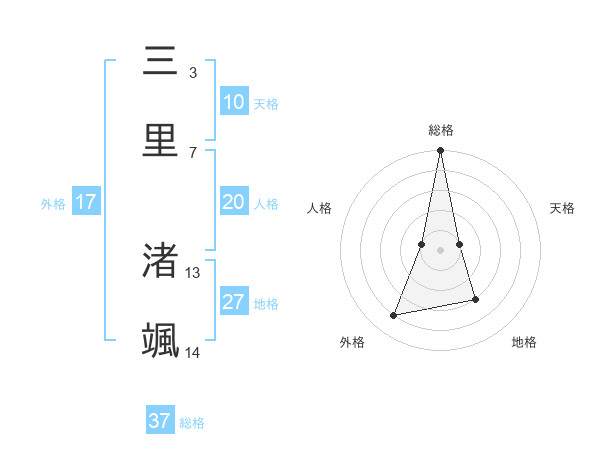 三里 渚颯さんを姓名の画数から五運を鑑定