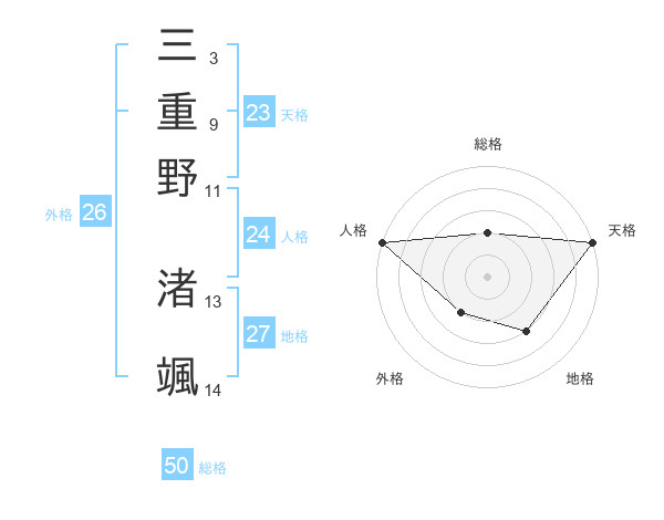 三重野 渚颯さんを姓名の画数から五運を鑑定