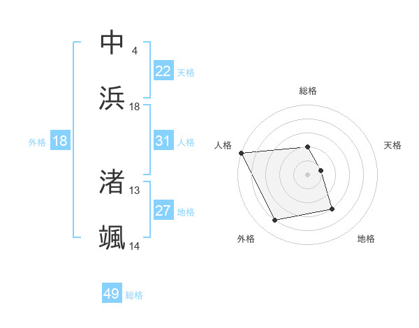 中浜 渚颯さんの総格は49画の2点!