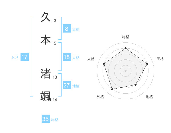 久本 渚颯さんの総格は35画の4点!