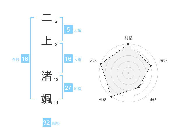 二上 渚颯さんを姓名の画数から五運を鑑定