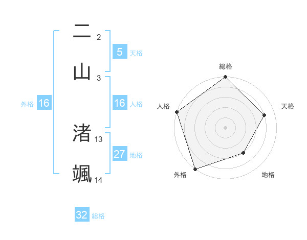 二山 渚颯さんを姓名の画数から五運を鑑定