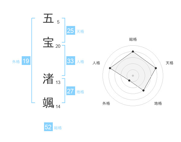 五宝 渚颯さんの総格は52画の4点!