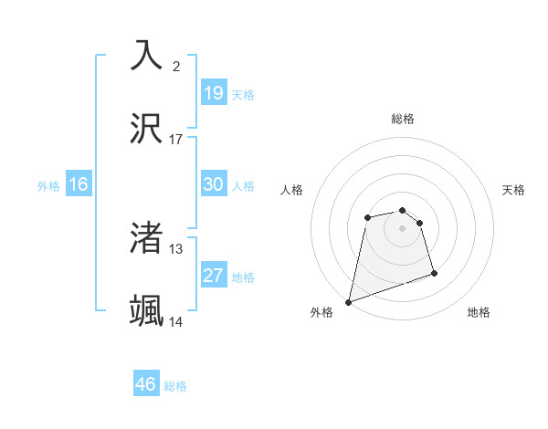 入沢 渚颯さんを姓名の画数から五運を鑑定