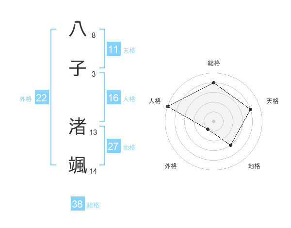 八子 渚颯さんの総格は38画の4点!