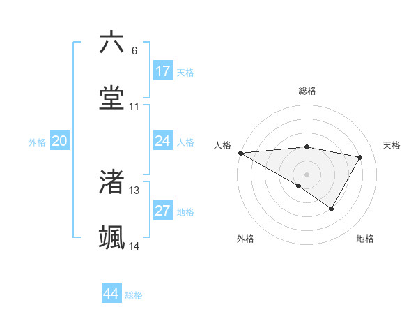 六堂 渚颯さんを姓名の画数から五運を鑑定