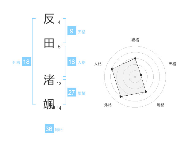 反田 渚颯さんを姓名の画数から五運を鑑定