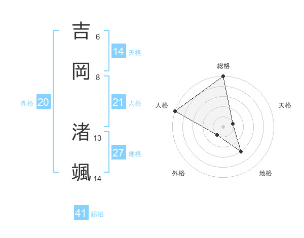 吉岡 渚颯さんの人格は21画の5点!