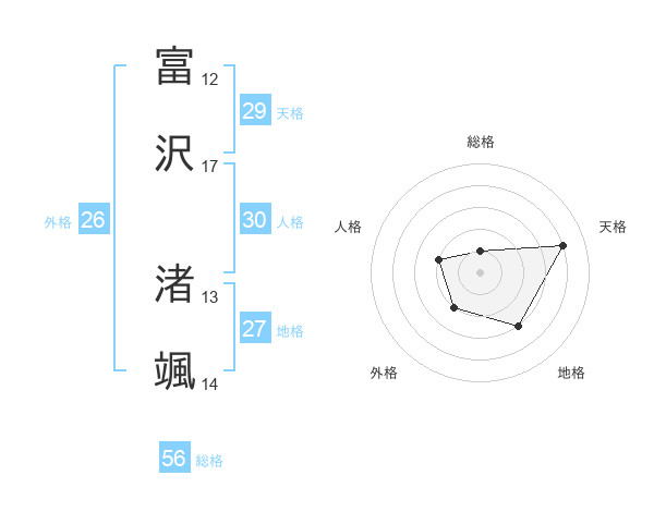 富沢 渚颯さんの天格は29画の4点!