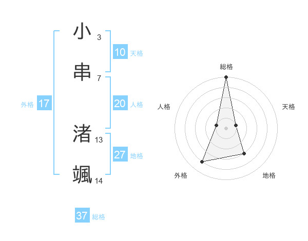 小串 渚颯さんの総格は37画の5点!