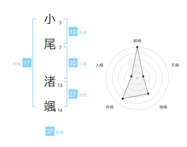小尾 渚颯さんの総格は37画の5点!
