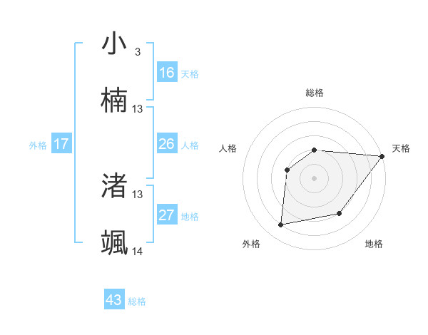 小楠 渚颯さんの総格は43画の2点!