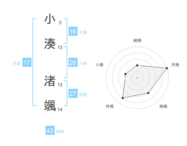 小湊 渚颯さんの地格は27画の3点!