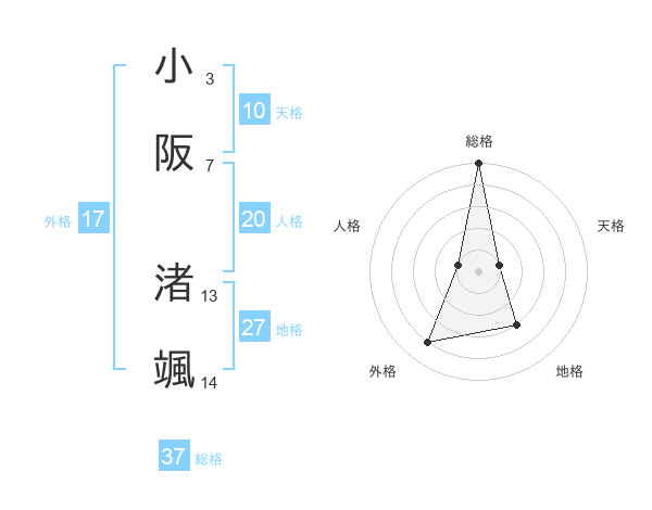 小阪 渚颯さんを姓名の画数から五運を鑑定