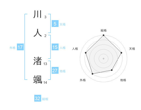 川人 渚颯さんの総格は32画の5点!