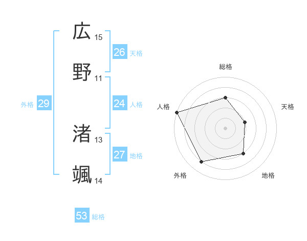 広野 渚颯さんを姓名の画数から五運を鑑定