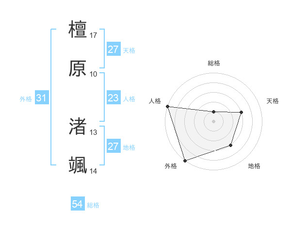 檀原 渚颯さんの外格は31画の5点!