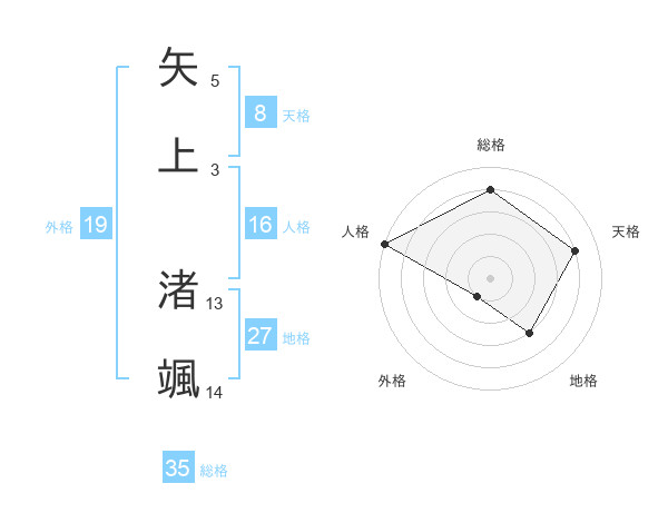 矢上 渚颯さんの総格は35画の4点!
