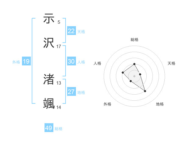 示沢 渚颯さんの総格は49画の2点!