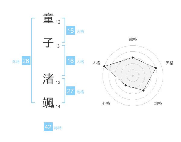 童子 渚颯さんの総格は42画の3点!
