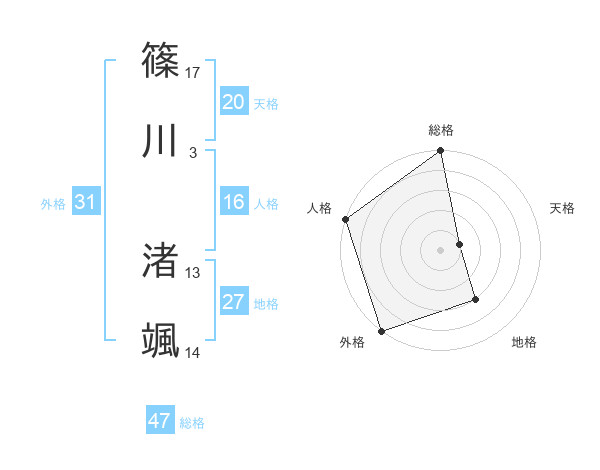 篠川 渚颯さんを姓名の画数から五運を鑑定