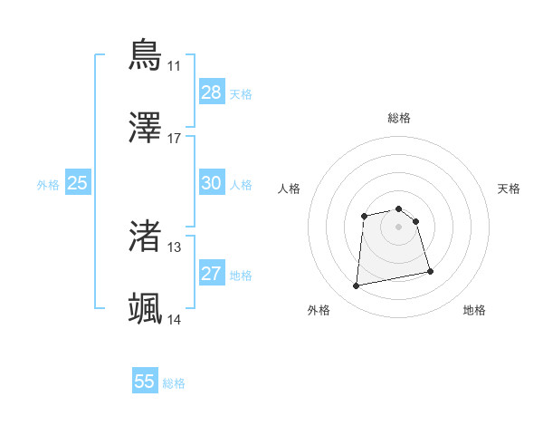 鳥澤 渚颯さんを姓名の画数から五運を鑑定