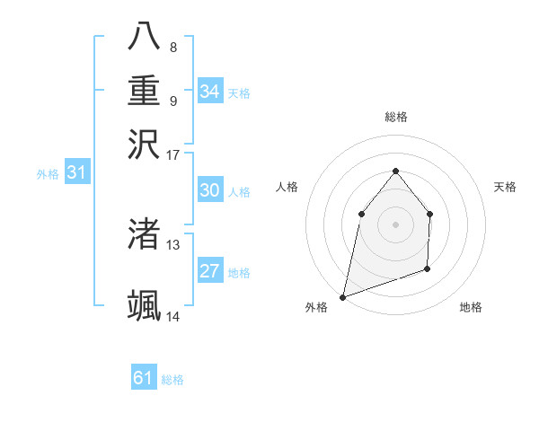 八重沢 渚颯さんを姓名の画数から五運を鑑定