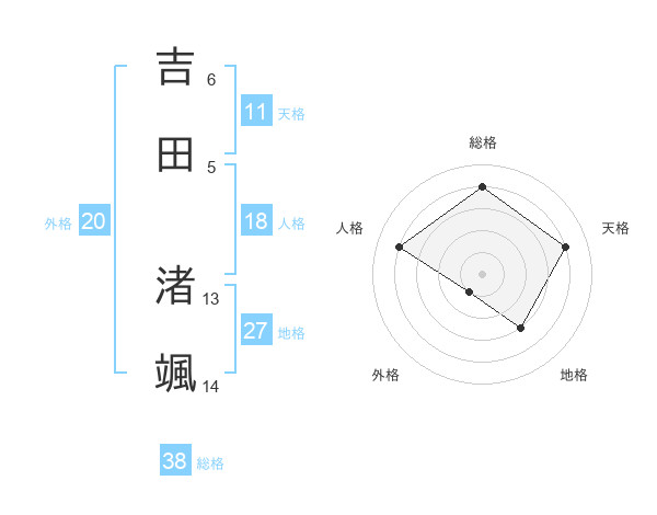 吉田 渚颯さんを姓名の画数から五運を鑑定