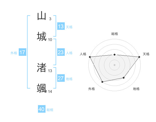 山城 渚颯さんを姓名の画数から五運を鑑定