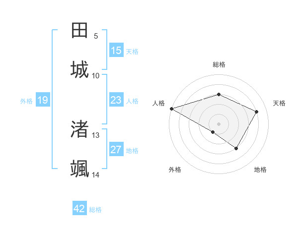 田城 渚颯さんの総格は42画の3点!