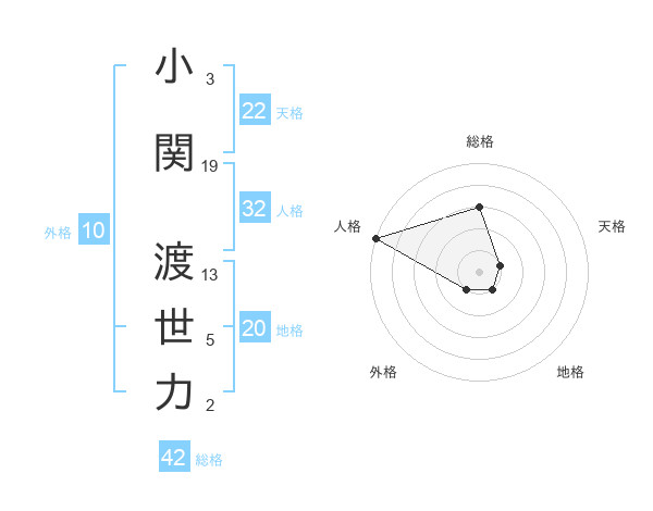 小関 渡世力さんを姓名の画数から五運を鑑定
