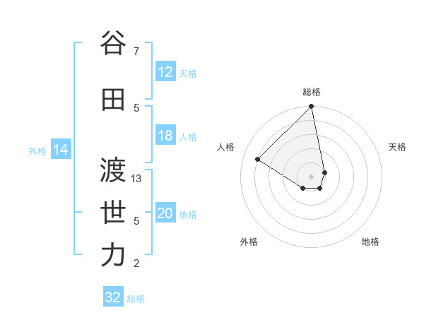 谷田 渡世力さんを姓名の画数から五運を鑑定