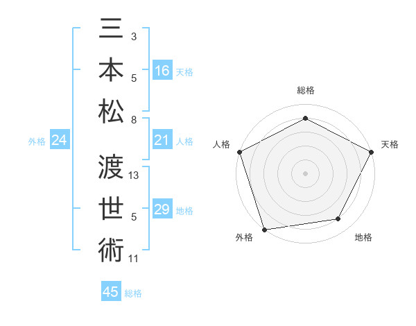 三本松 渡世術さんを姓名の画数から五運を鑑定