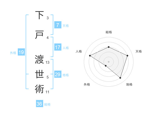 下戸 渡世術さんの外格は19画の1点!