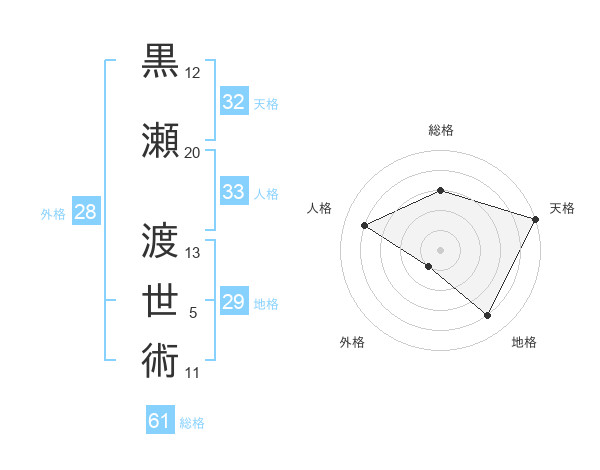 黒瀬 渡世術さんを姓名の画数から五運を鑑定