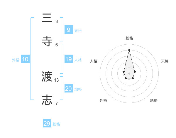 三寺 渡志さんの総格は29画の4点!