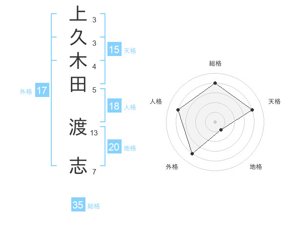 上久木田 渡志さんを姓名の画数から五運を鑑定