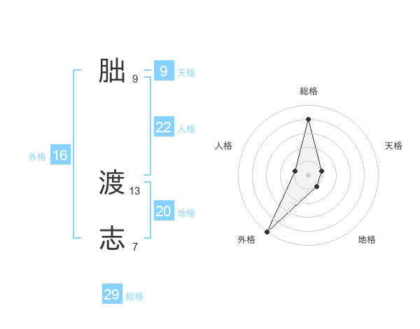 朏 渡志さんの総格は29画の4点!