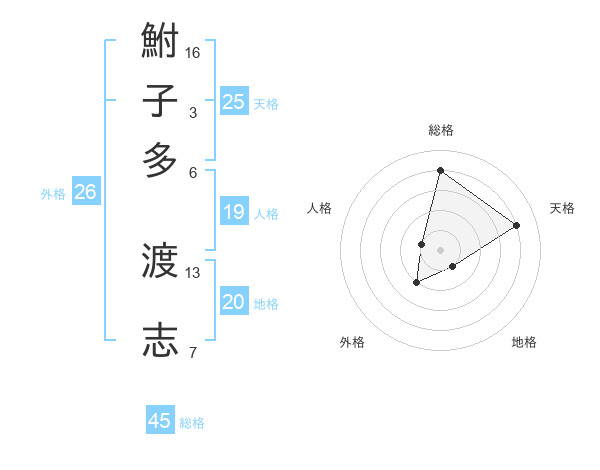鮒子多 渡志さんを姓名の画数から五運を鑑定