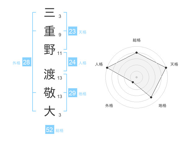 三重野 渡敬大さんを姓名の画数から五運を鑑定