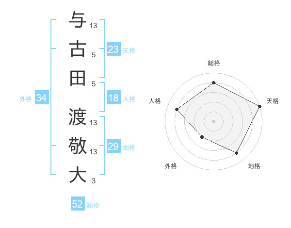 与古田 渡敬大さんの総格は52画の4点!