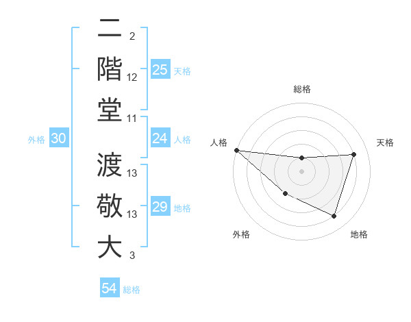 二階堂 渡敬大さんを姓名の画数から五運を鑑定