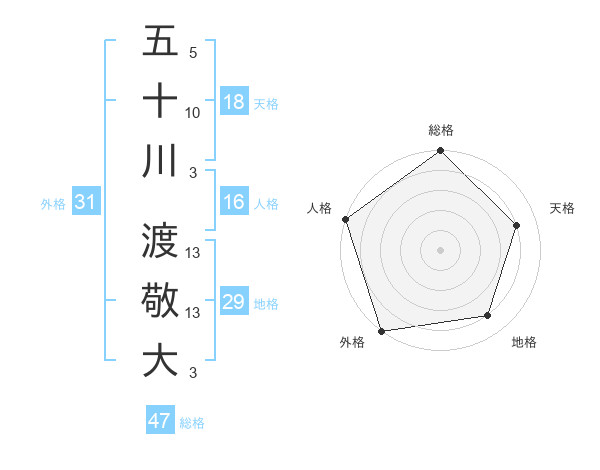 五十川 渡敬大さんを姓名の画数から五運を鑑定