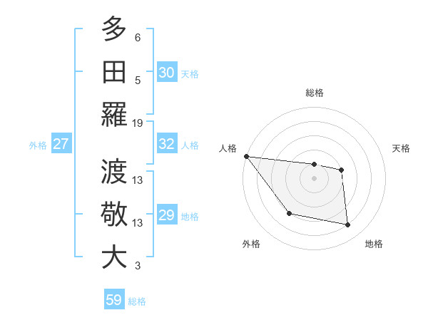 多田羅 渡敬大さんを姓名の画数から五運を鑑定